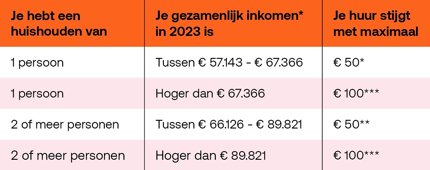 Huurverhoging voor huishoudens met een hoger inkomen is € 50 euro of € 100